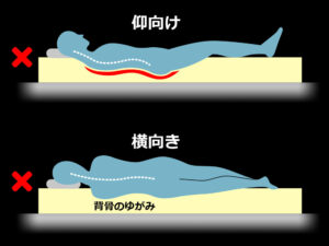 適度に硬めのマットレスは腰の沈みすぎを防ぎます。